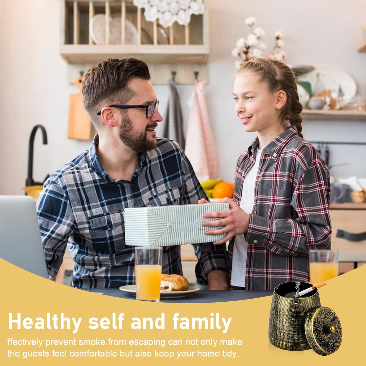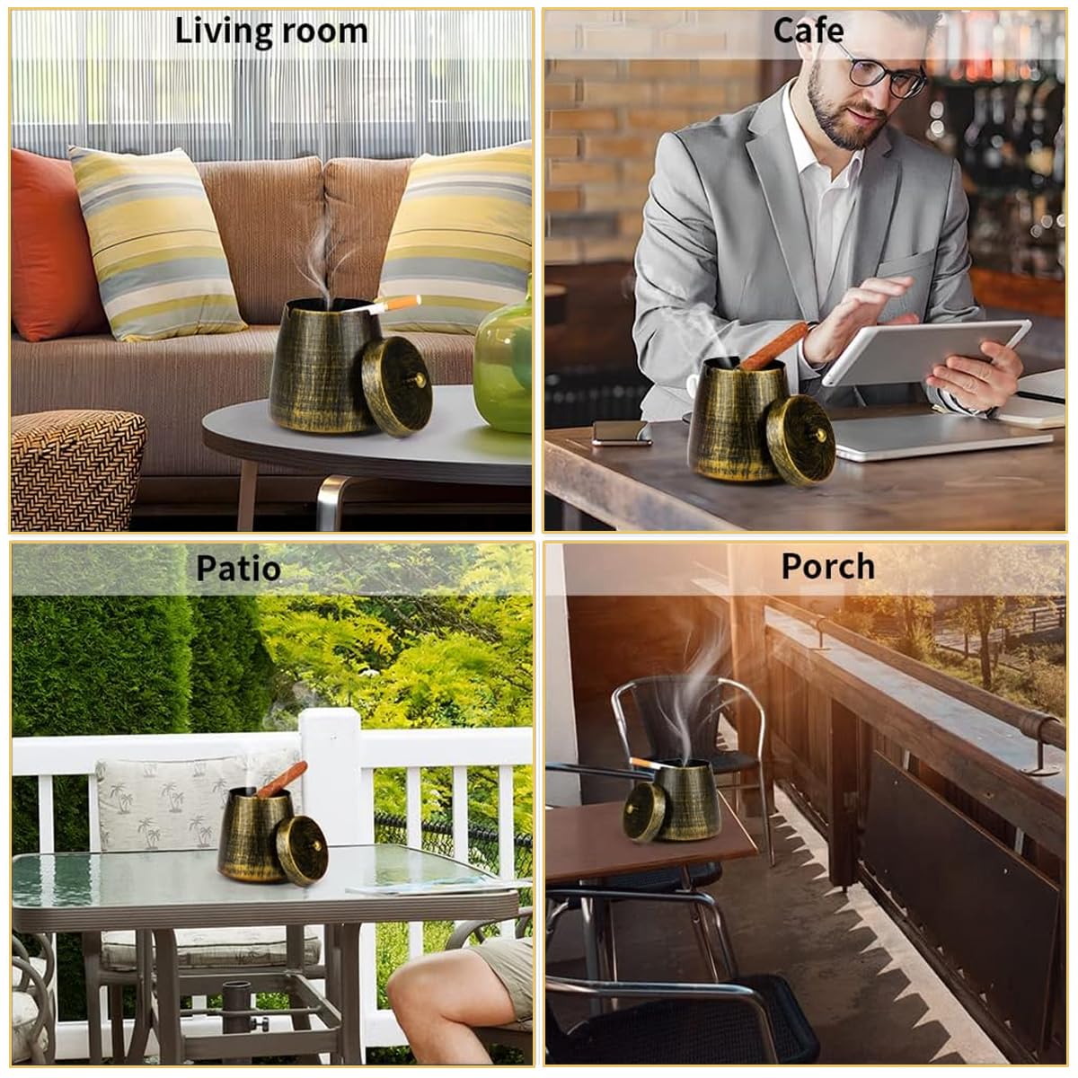 This stylish cylindrical ashtray adds elegance to any space while providing functionality.