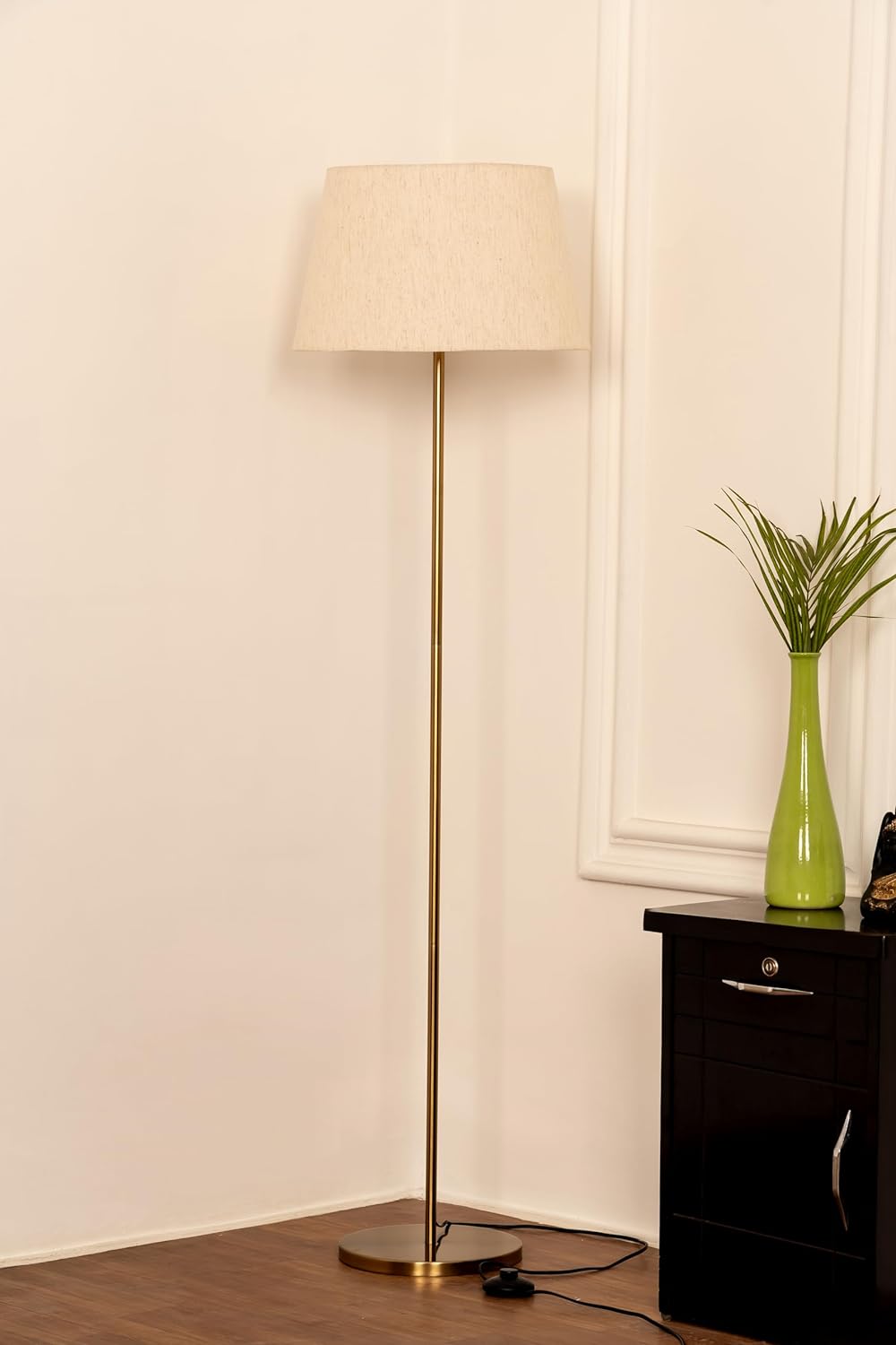 Antique Brass Finish Floor Lamp: This floor lamp will enhance the interiors of your space Manufactured Using: Premium quality material, elegant finish, stable metal base, sturdy frame Minimalistic Stunning Design: Designed to be compact and perfect fit for both large and small spaces Reliable Packaging: We invest in making our packaging strong and robust