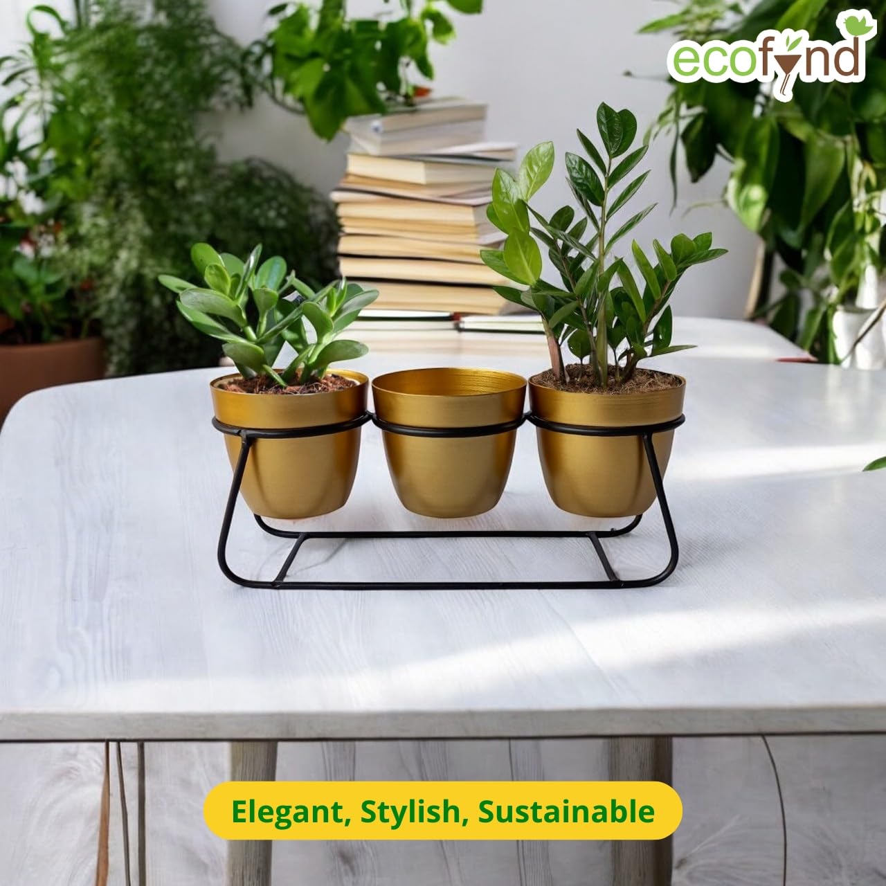 Welcome to ecofynd Planter Pot with Stand A set of generous and elegant flower pots will immediately improve your house or outdoor space, make your flowers more noble, and create a modern urban feel. With contemporary matte finishing, these pots can accent your space at your home nicely. It will look great with indoor plants, house plants and large live plants or artificial greenery. If you’re looking to add a modern touch to your indoor plants, these are must have! Outdoor Our plant pots made of durable metal material, which is stronger and lighter than ceramic, easier to move, ideal for display your favorite plant outdoors with this beautiful planter. Living room If they are used indoors, it is recommended to use either plastic pot inside for longer life. Doorway Simple cylinder-shaped design and various pattern planter pots with stand, also suitable for doorway. Make your home unique and distinctive. Bedroom Mid-century style planters will create a subtle, eye-catching focal point in any indoor living space, ideal for decorate your bedroom.