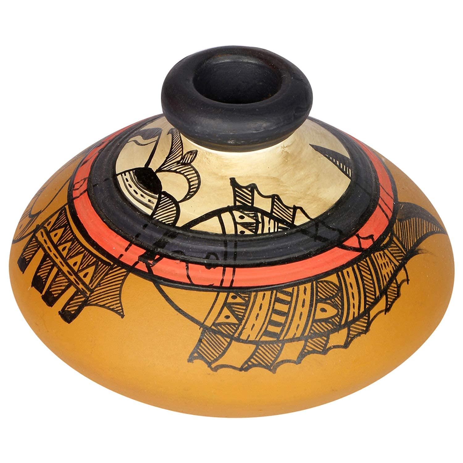 Exquisite Terracotta Hand-Painted Vase Set of 3 in a stunning Yellow Color, inspired by the ancient Indian art form, Madhubani. These artfully crafted vases will elevate the aesthetics of your living spaces and bring a touch of traditional elegance to your home decor. Transform your living spaces into an art gallery with our terracotta decorative for home in yellow color. Enhance your home decor with the timeless beauty of Madhubani art and let these vases become the focal point of admiration for your family and guests alike. Experience the cultural charm and artistic finesse in the comfort of your own home.