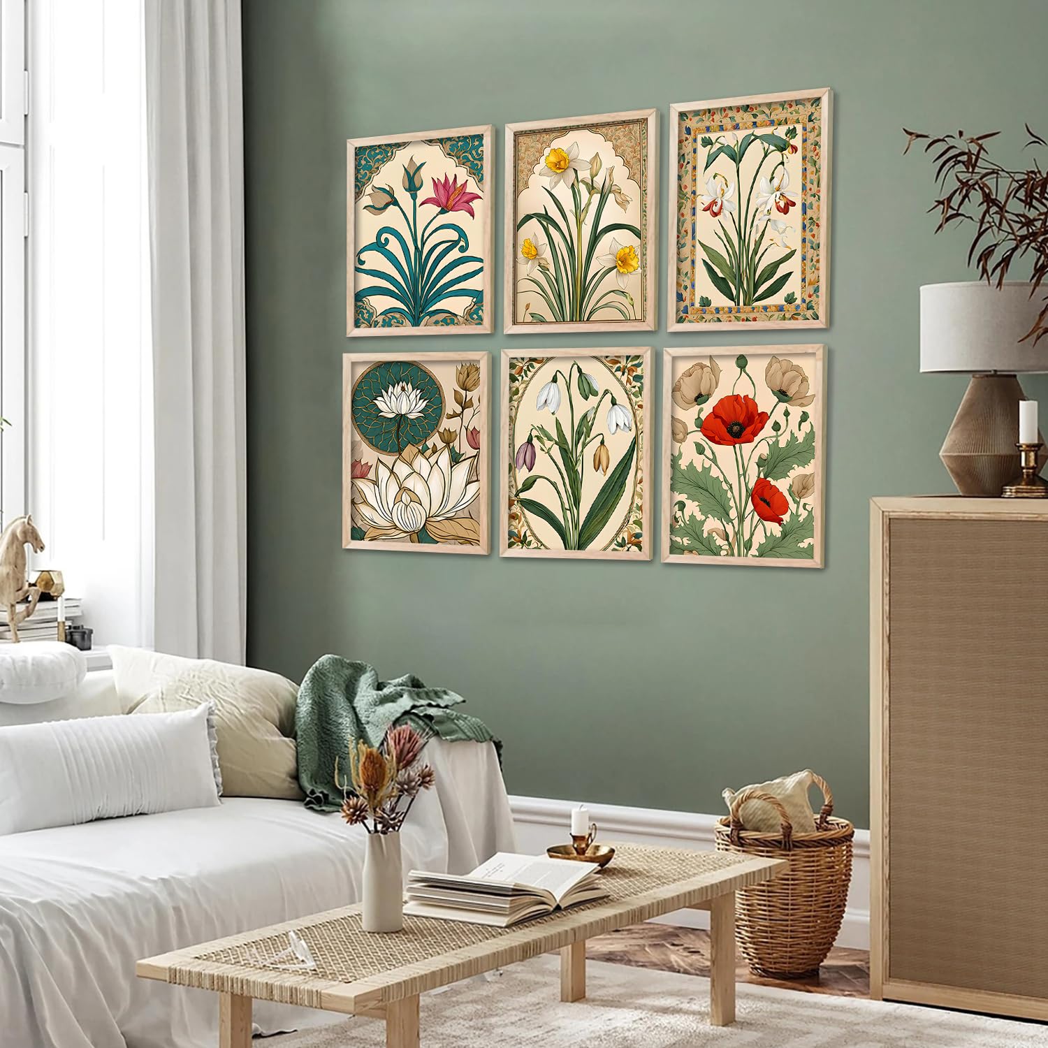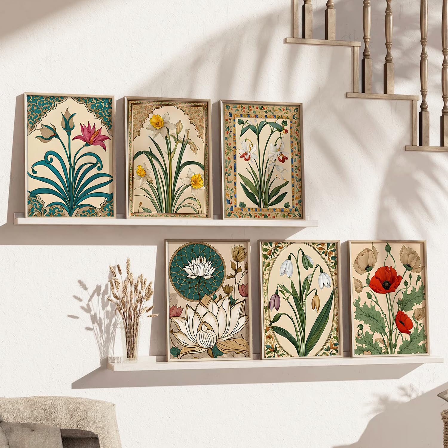 Very beautiful frames with lovly prints.Same as shown here.Light weight and came very well packed.Will be better if they gave maching nails for walls with that . Would be easier and faster to hang it on wall.Over all excellent buy. ❤️