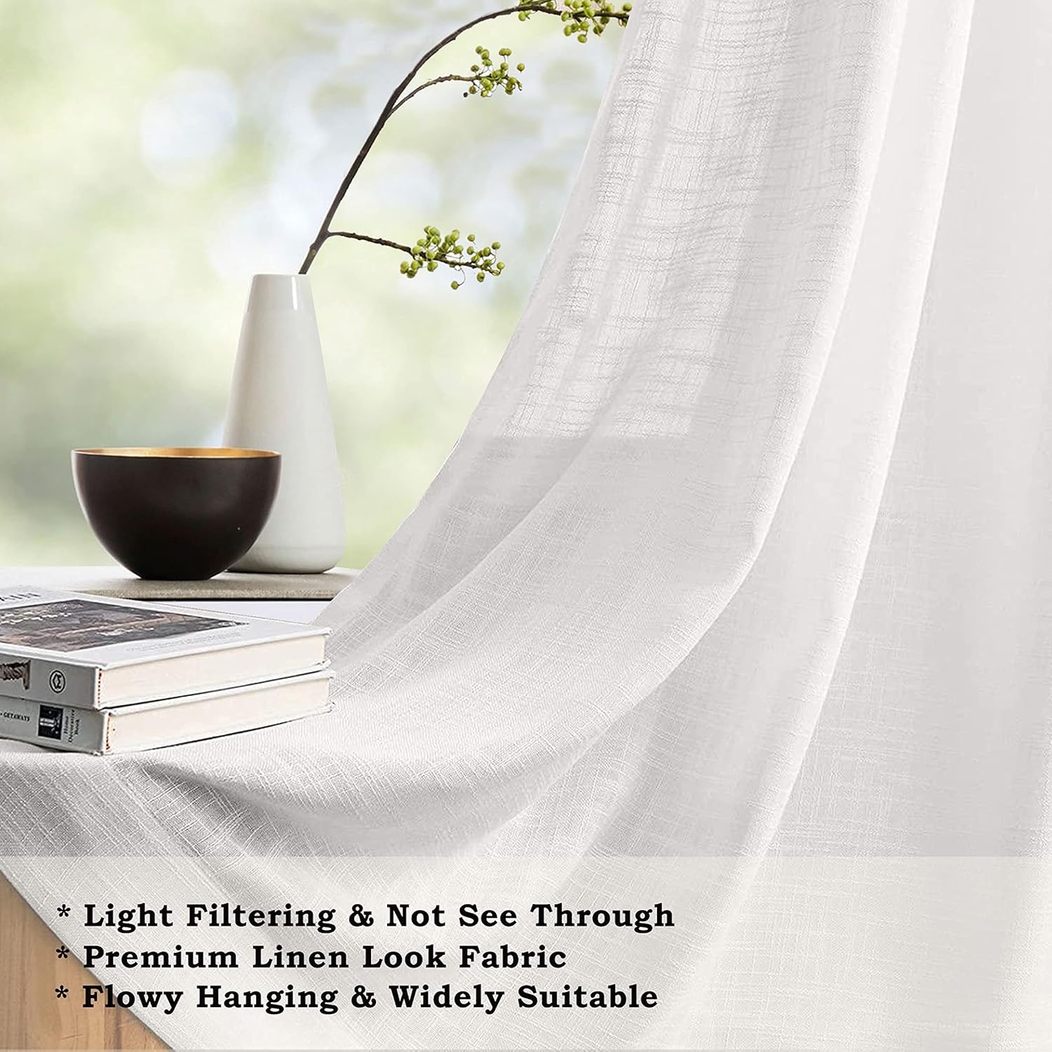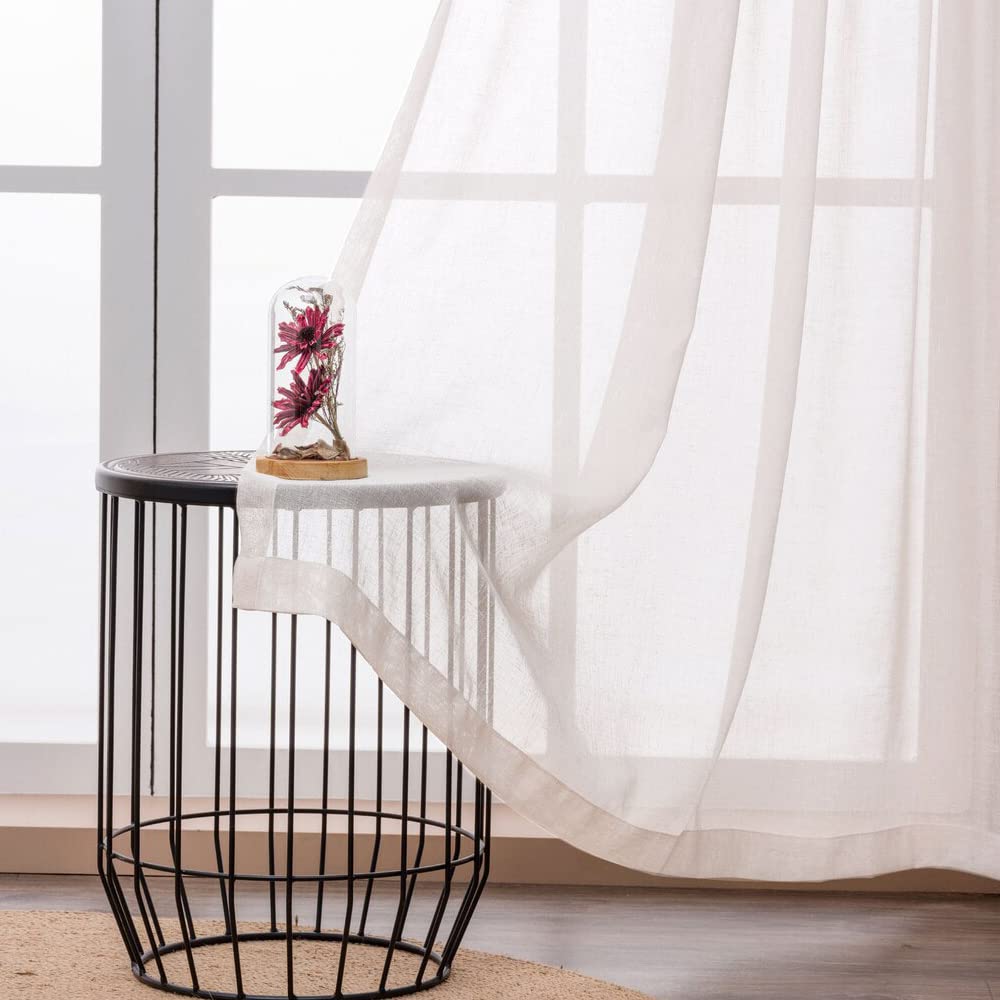 Long Door Faux Linen Sheer Curtains