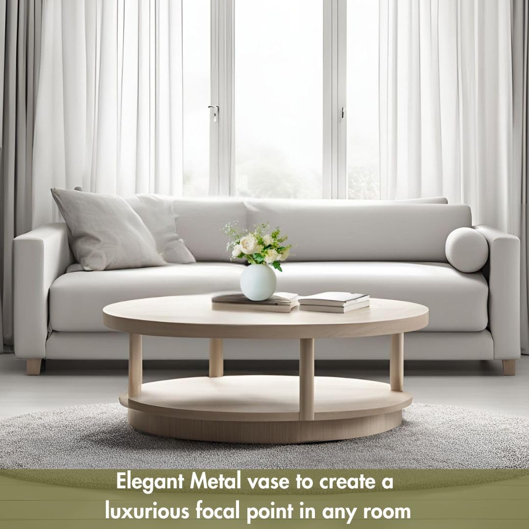 These metal vases are a great addition to any living room. It’s beautiful and well-made, with detailed designs and a shiny finish. The vase is sturdy and balanced, so it stays in place. You can use it with flowers or on its own, and it’s easy to clean. I highly recommend it for its beauty and practicality. I love it