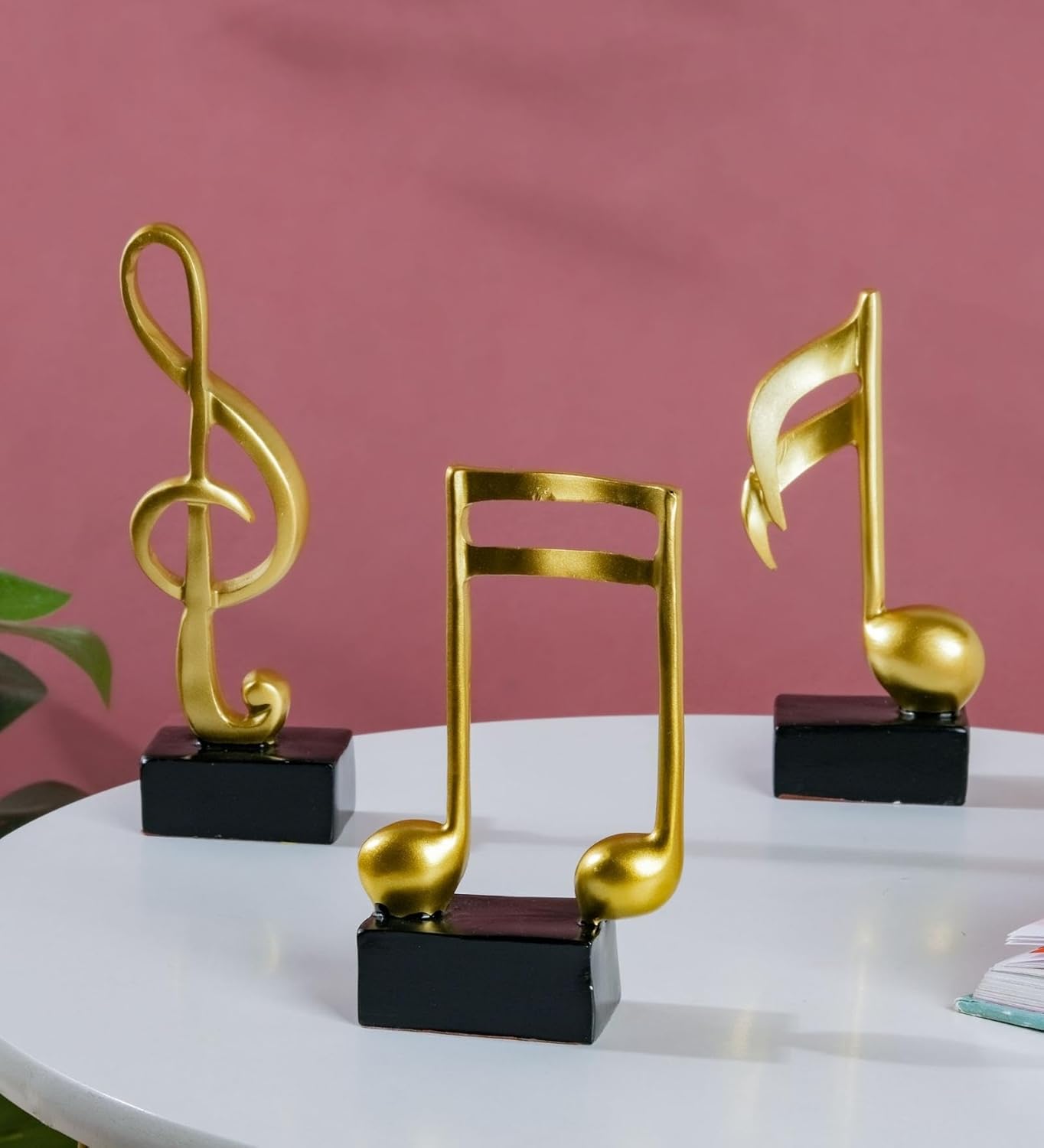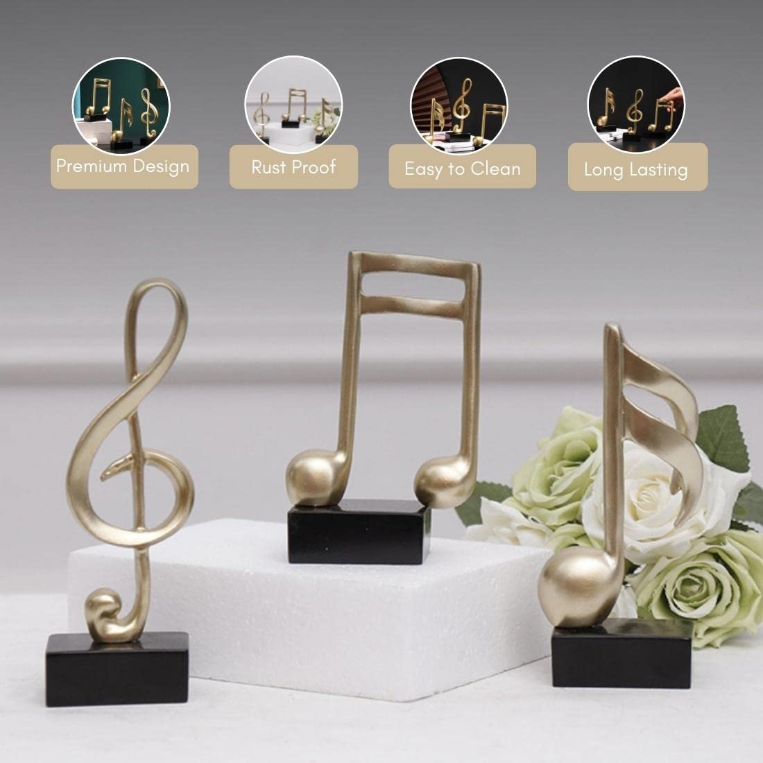 About this item ABOUT THE BRAND: Nestasia is a home décor brand that aims to provide a large variety of quality products across tableware, serveware, glassware, home décor and soft furnishings. ABOUT THE PRODUCT: The gold music note showpiece set comprises three music note showpieces of different shapes and can be an elegant addition to one’s home. The resin showpiece is crafted to enhance the look of one’s home to a notch higher. ITEMS INCLUDED: 1 set of 3 music note decorations. USAGE: The resin music note showpieces are designed to adorn one’s mantel, tabletop, or wall shelf. The quirky music note showpiece can be an ideal birthday or housewarming gift for a friend who is fond of music. CARE INSTRUCTIONS: Wipe and clean with a dry cloth. › See more product details
