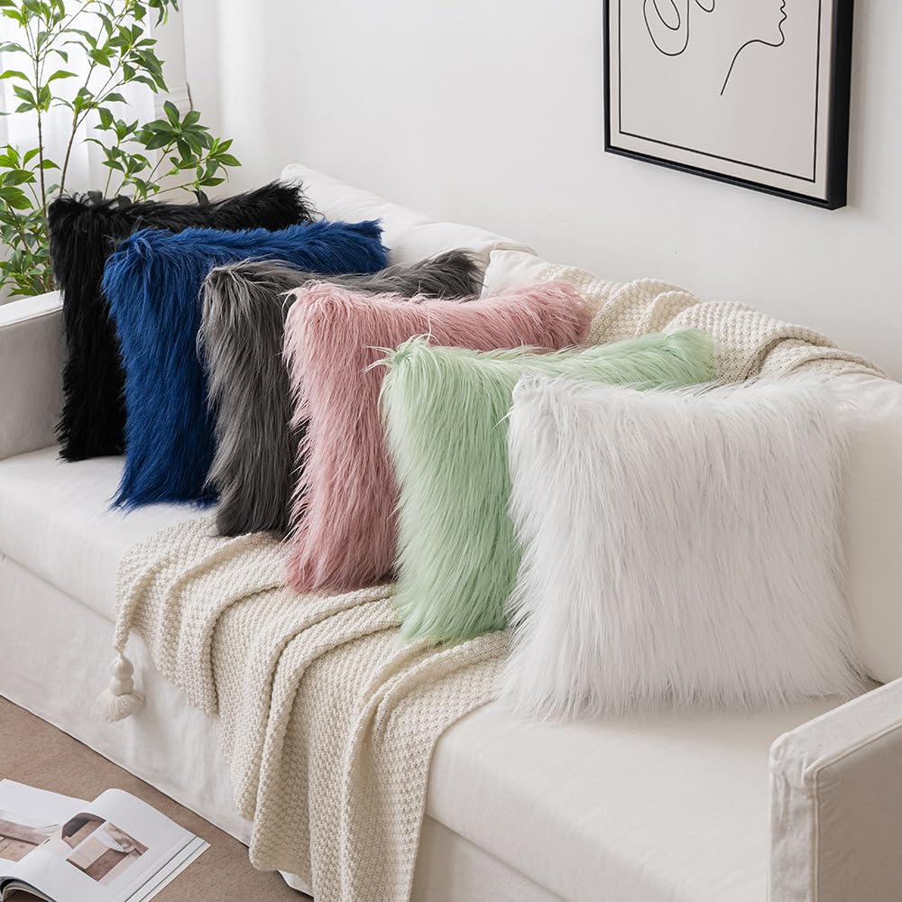 About this item Package Includes: A set of two 16 x 16 inch pillow covers without inserts. Please note that there may be a 1 to 2 cm deviation due to manual cutting and sewing. Material: Constructed from polyester, these pillow covers are exceptionally soft, smooth, plush, and long-lasting. The faux fur not only adds a touch of elegance but also offers warmth and comfort, making them ideal for snuggling up. Functions: These luxurious pillow covers elevate your home decor with unmatched sophistication and plush comfort. They create a warm and welcoming environment in any setting, be it your living room, bedroom, office, cafe, or even a party. Double-sided Design: The front of the pillowcase is soft and fluffy faux fur and the reverse side is suede, providing a smooth and cozy surface. It is also easy to care for, adding convenience to its upscale look. Washing Guide: Machine Wash Cold Separately, Gently Cycle Only, Dot Not Bleach, Tumble Dry Low, Do Not Iron and it’ll look brand new. Please note that the color may vary in different lighting conditions or when viewed on different screens. › See more product details