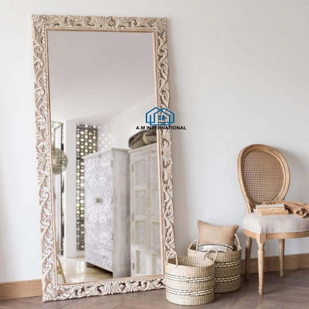 - Carved mirror frame with elegant wooden design