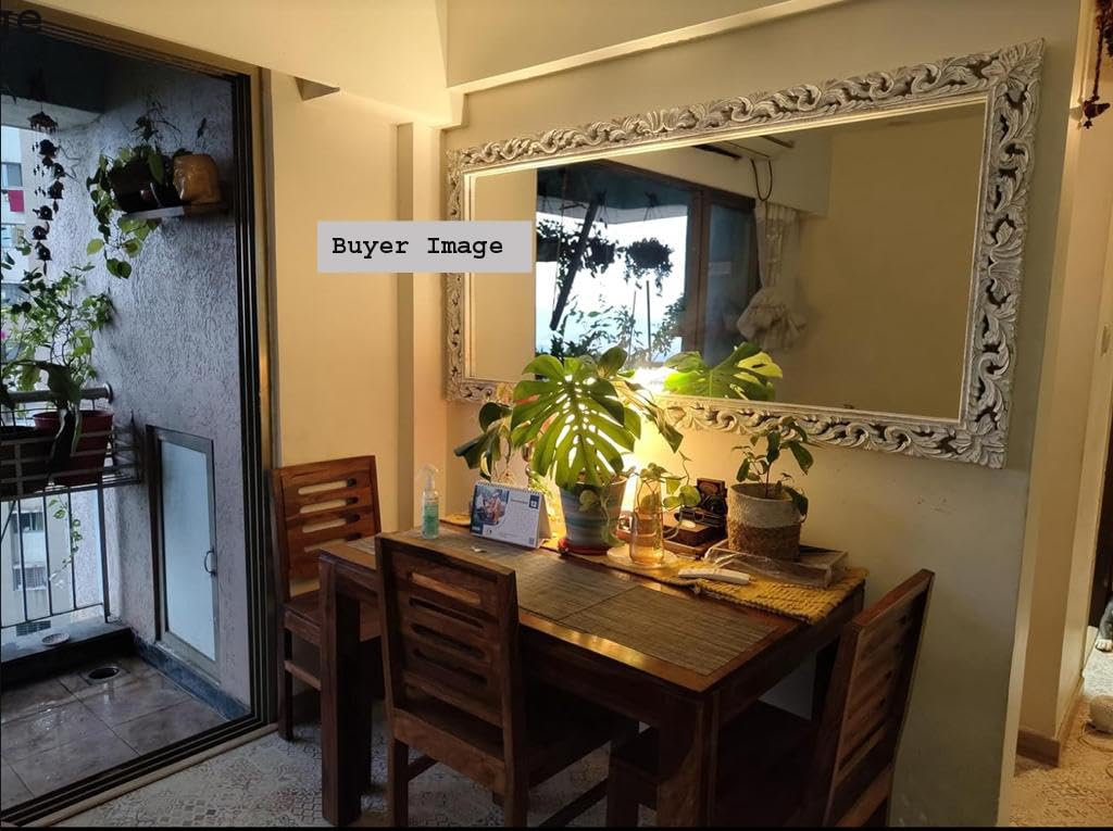 This frame is just gorgeous! Made of good quality wood and lovely intricate carvings on it. Makes your space look expansive. Super happy with it 🙂 Definitely good value for money. They give screws and brackets alongwith the frame to install your mirror and hang the frame onto the wall.